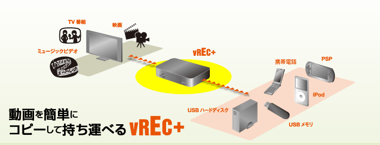 vRec+はテレビやVHS、DVDレコーダーなどと接続して、録画することができます。
