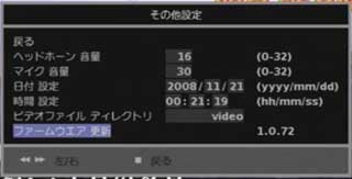 vRec+[メニュー]-[その他の設定]-[ファームウェア更新] を実行します。