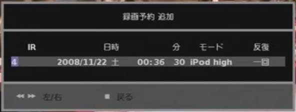 iPodに直接録画して、視聴する場合には、録画モードをiPodモードに設定します。